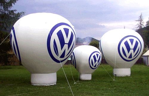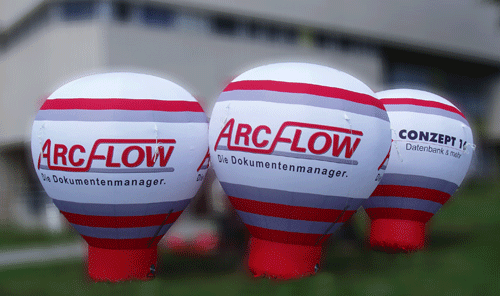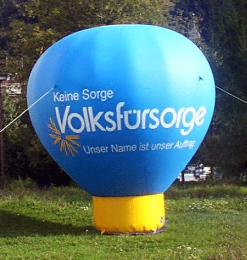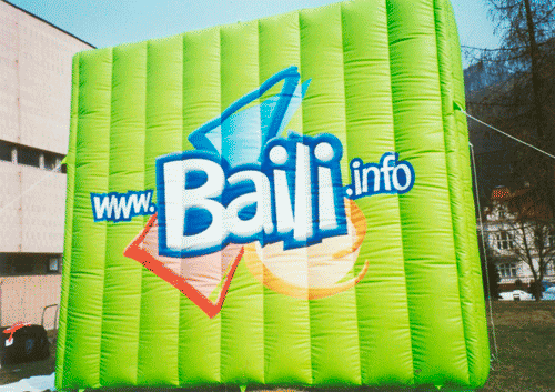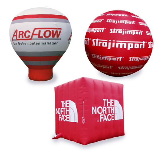 Aufblasbare Werbeträger in verschiedensten geometrischen Standardformen wie Kugeln, Würfeln oder Stand-Ballonen stellen ein werbewirksames Highlight mit hohem Wiedererkennungswert in Überformat dar.