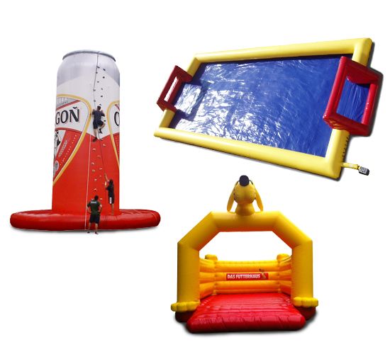 Neben Hüpfburgen, Riesenrutschen realisieren wir z.B. auch bekletterbare "Bierdosen" oder Spielfelder. Bei der Realisierung greifen wir dabei auf besonders reißfeste und widerstandsfähige Materialien zurück, die hochwertig verarbeitet werden um eine möglichst lange Lebensdauer sicherzustellen.
