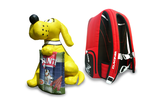 Alle Produktnachbildungen und Sonderformen sind mit einem leistungsstarken und gleichzeitig geräuscharmen, innenliegenden Gebläse ausgestattet. Der Aufbau erfolgt in nur wenigen Minuten. Je nach Einsatzzweck bestehen die Sonderformen aus PVC-Plane oder Polyesterstoff.