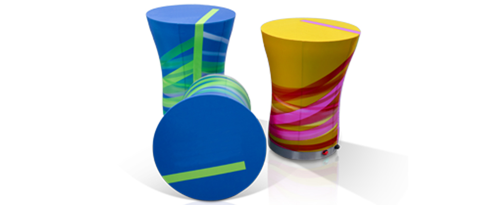 Alle Möbel bestehen aus einem luftdichten, umweltfreundlichen und recycelbaren Polyurethan-Körper, der durch eine bedruckbare, hochqualitative und langlebige Polyesterstoffhülle eingefasst wird.