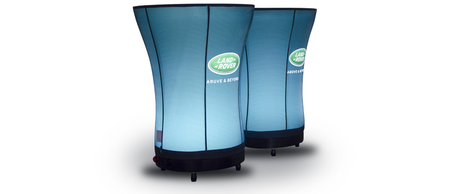 Alle unsere aufblasbaren Möbelstücke können flach verpackt, einfach getragen und platzsparend in einem Kofferraum transportiert werden. Einfach und praktisch wie das gesamte Konzept unserer aufblasbaren Werbeträger.